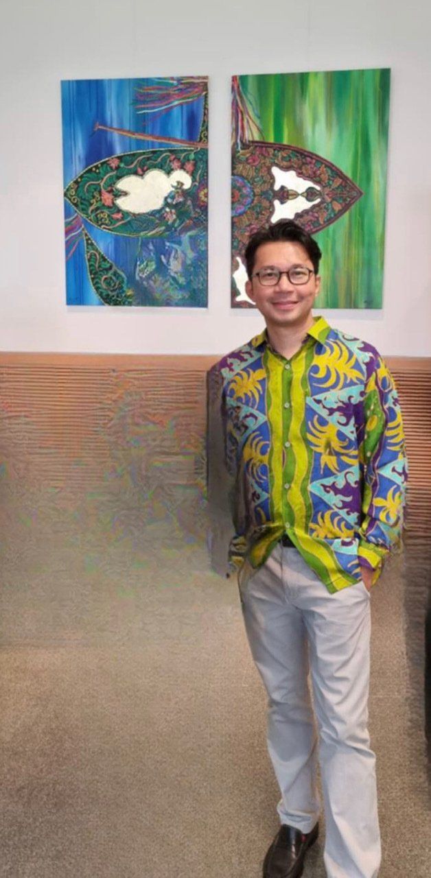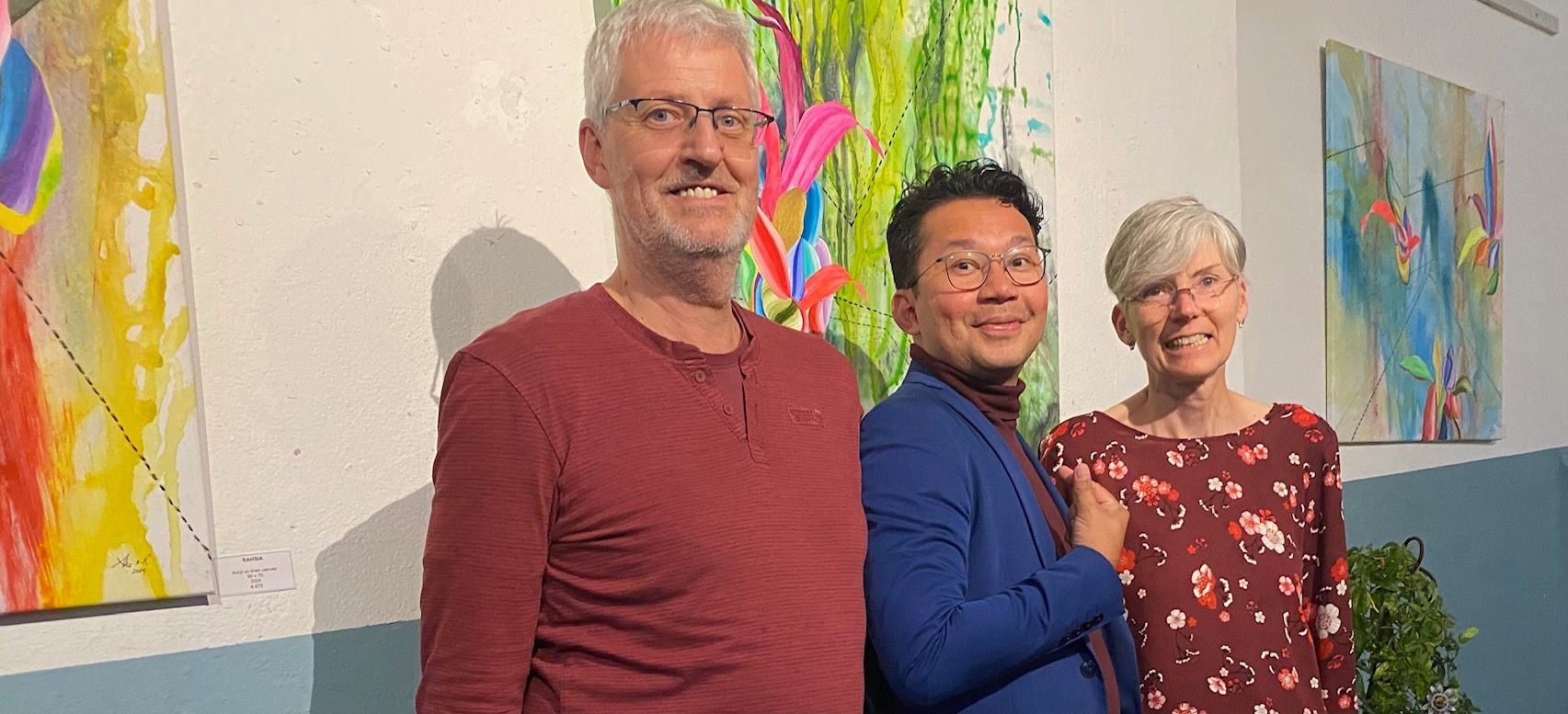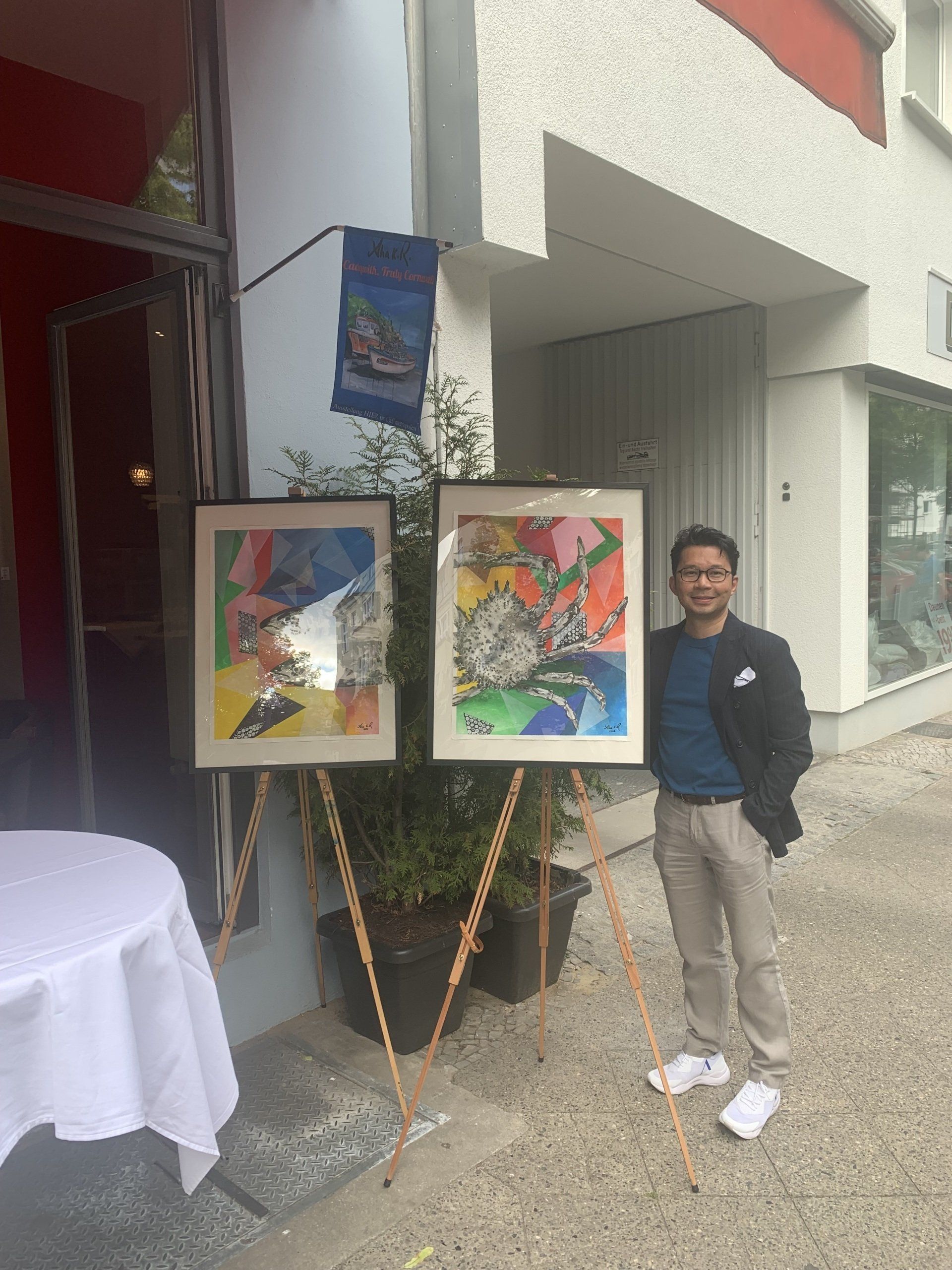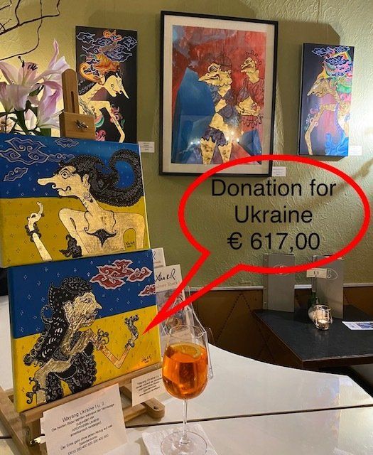 Im "Kunst im Raum - Café Berio" zeigt er Wayang Kulit-Interpretationen und seine jüngsten Arbeiten, bei denen er sich auf einen freien, experimentierfreudigen Umgang mit Farben und Formen in Acryl, Aquarell und Tinte konzentriert hat.