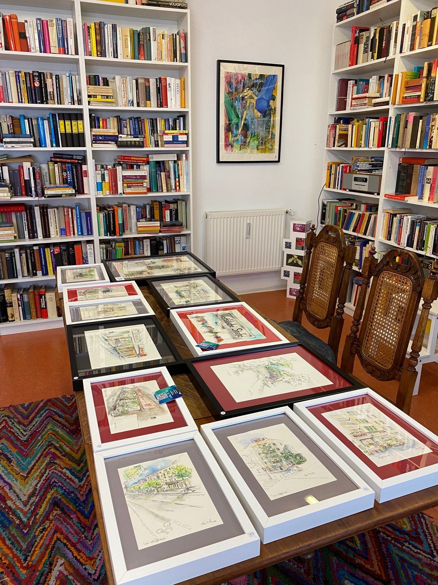 Ausstellung mit ausgewählten Arbeiten von Aha K.R. im Antiquariat "Quo Vadis"