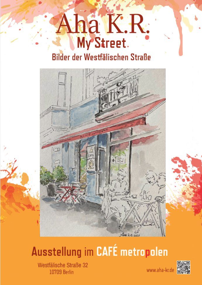 "My Street - Bilder der Westfälischen Straße", der Straße, in der er seit langem lebt. Zu sehen sind Ansichten und Impressionen des Straßenbildes, künstlerisch dargestellt in Aquarell, Gouache und Tinte.
